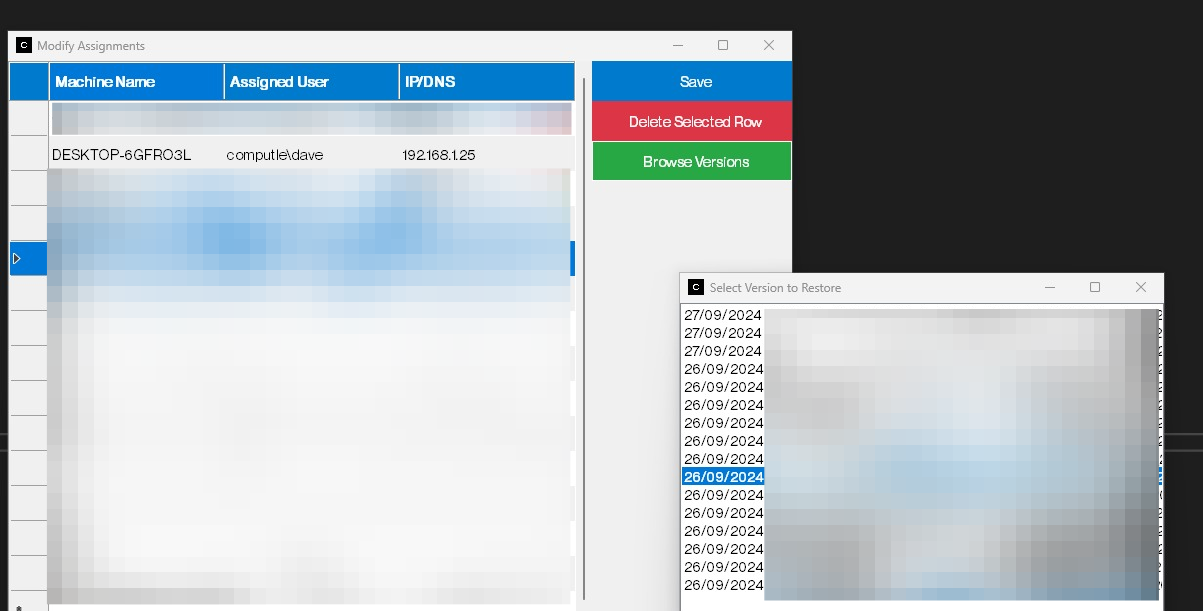 Administrators can access a simple interface where they can assign machines. Within here, they can also browse previous versions of the assignments and restore previous versions where required.