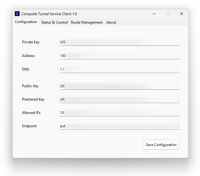 Computle Tunnel is powered by a robust Windows service application that manages WireGuard VPN tunnels through a REST API interface. This enables seamless integration with the Computle Orchestrator for centralized management. Key components include: