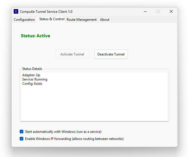 * **Status Monitoring**: Real-time monitoring of tunnel state and connectivity